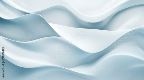 © Yaroslav Stepannikov, Fototapeta premium Wavy lines in slate blue and soft snow white, mimicking snowdrifts. Soft gradient background, minimalist composition