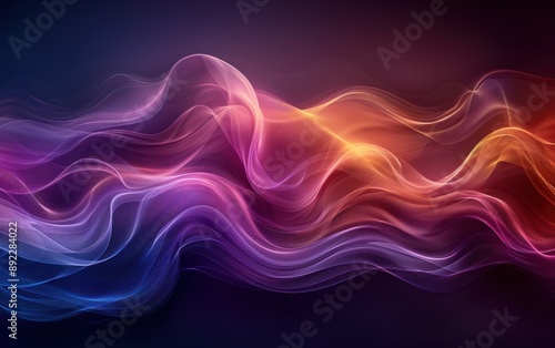 Obraz premium Wavy lines of light in shades of purple, orange, and blue dance in a surreal...