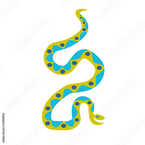 © Rina Ka, Naklejka premium Wavy ornamental green snakes in cartoon flat style on white background. Cute animal perfect for decor of children baby room, textiles print, fabric, sticker, package, clip art.