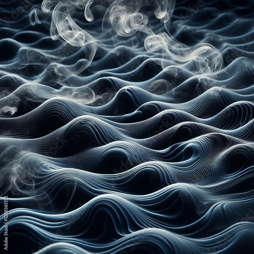 © Leisan, Obraz premium Wavy Ripples Close up of smoke drops with wavy ripples creating