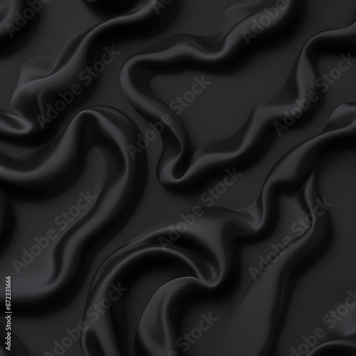 © Lied, Fototapeta premium Wavy smoot soft black silk drap fallind surface sample texture background