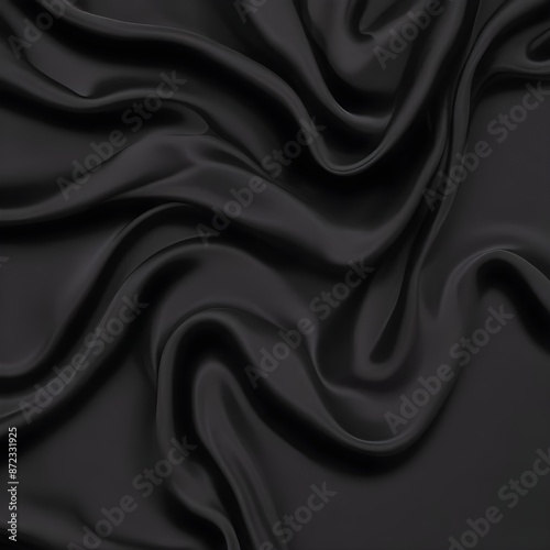 © Lied, Fototapeta premium Wavy smoot soft black silk drap fallind surface sample texture background