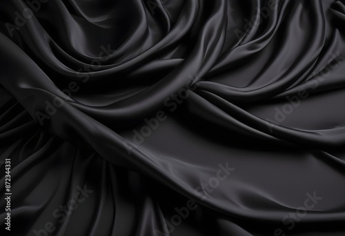 © Lied, Fototapeta premium Wavy smooth black silk drapery background texture sample