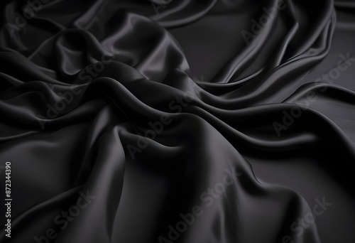 © Lied, Fototapeta premium Wavy smooth black silk drapery background texture sample