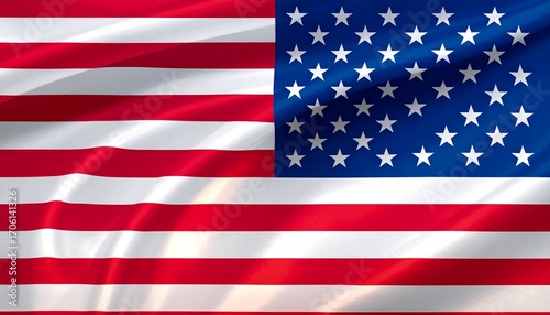 © Haven, Naklejka premium Wavy United States flag with stars and stripes on white background, symbolizing national pride, unity, and historical identity.