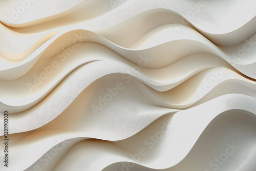 © Chalita, Obraz premium Wavy white pattern on a light brown textured background creating an abstract design