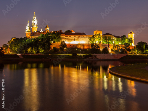 © pyty, Fototapeta premium Wawel castle and Vistula river at night