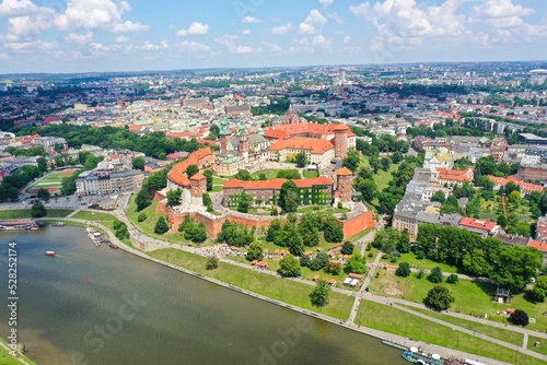 Fototapeta premium Wawel Castle in Krakow on a cloudy summer day. Old town in the background.