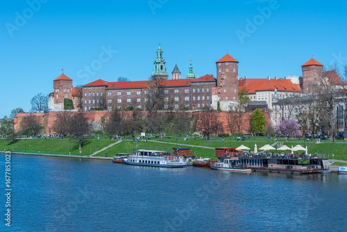 Fototapeta premium Wawel castle in the polish city Krakow/Cracow reflected on the V