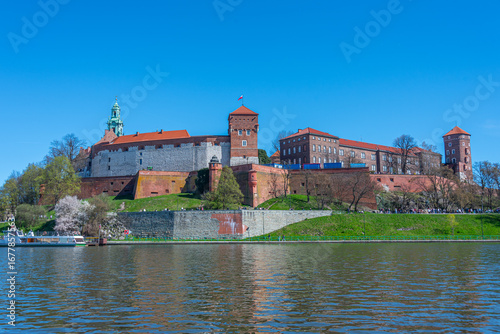 © dudlajzov, Fototapeta premium Wawel castle in the polish city Krakow/Cracow reflected on the V