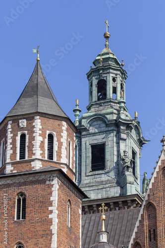 Obraz premium Wawel Royal Castle with Silver Bell Tower and Clock Tower, Cracow, Poland.