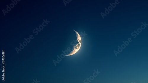 © PixelVision Studio, Naklejka premium Waxing crescent moon in deep blue night sky