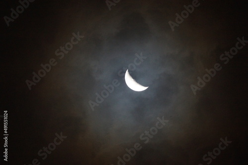 © mymdamin, Fototapeta premium Waxing Crescent of Moon amidst dark clouds
