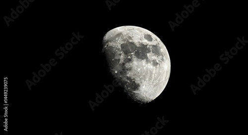 © OmRioRio, Naklejka premium Waxing Gibbous Moon Close-up View Against Black Sky