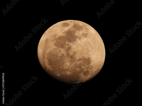 Fototapeta premium Waxing Gibbous Moon in High Detail Against Black Night Sky.