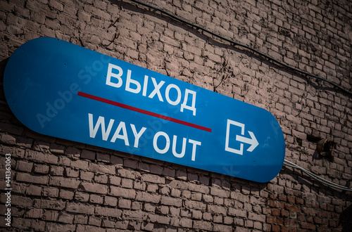 Obraz premium way out sign on brick wall