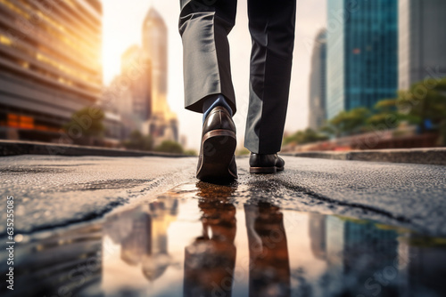 Fototapeta premium Way to success. businessman walk on road and start to success, close up shoes...