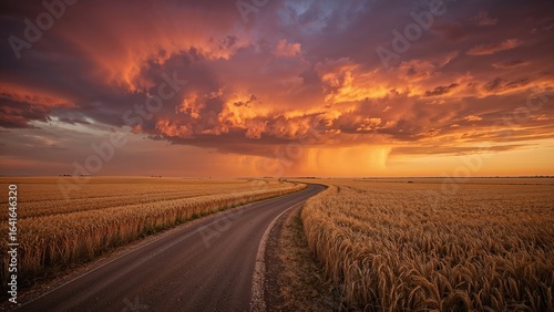 © vxnaghiyev, Fototapeta premium Way to the Harvest Field Under the Evening Sky