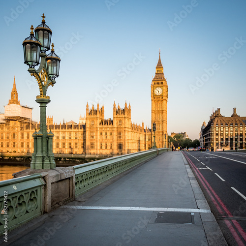 © pxl.store, Fototapeta premium Wcześnie rano Londyn: Houses of Parliament, Westminster Bridge