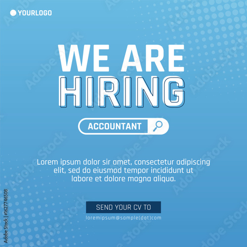 © wimagine, Obraz premium We are hiring banner with blue gradient background