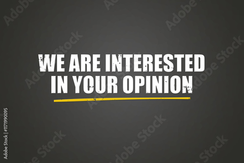 Fototapeta premium we are interested in your opinion. A blackboard with white text. Illustration with grunge text style.