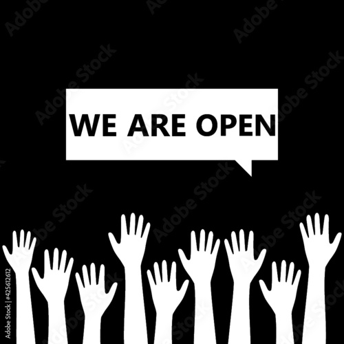 © sljubisa, Obraz premium We are Open, Speech bubble isolated on dark background