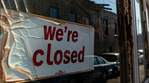 © MantasIsAI, Obraz premium "We're closed" sign in a window