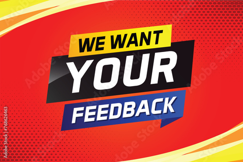 © Haji, Fototapeta premium We want your feedback speech word concept vector illustration 3d style for use landing page, template, ui, web, mobile app, poster, banner, flyer, background, Loudspeaker, label We