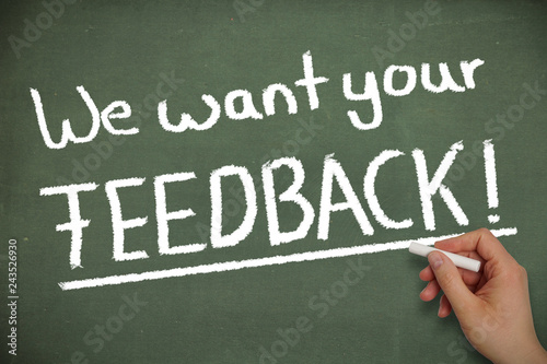 © OFC Pictures, Fototapeta premium We want your Feedback. Text written on a green chalk board.