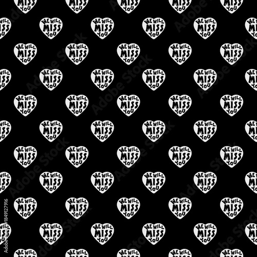 © sljubisa, Naklejka premium We will miss you heart seamless pattern isolated on black background