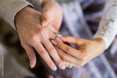 © waranyu, Fototapeta premium wear a ring, wedding ring, love couple