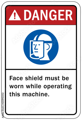 Fototapeta premium Wear face shield warning sign and labels face shield must be worn while operating this machine