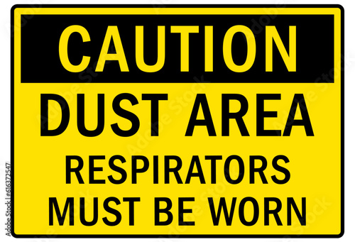 Fototapeta premium Wear respirator warning sign and labels dust area, respirators must be worn