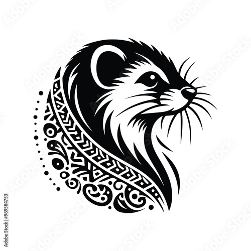 © Cici, Obraz premium Weasel in bohemian black and white silhouette illustration -