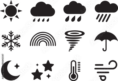 © Graphora, Obraz premium Weather icon set forecast sun rain snow climate
