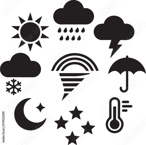 Obraz premium Weather icons forecast sunshine, rain, and storms