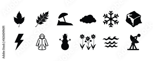 © PURE VECTOR WORK, Naklejka premium Weather seasons nature elements vector icons set autumn winter spring summer climate forecast symbols