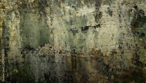 © Arthur, Obraz premium weathered abstract wall texture with muted green and brown tones, perfect for rustic background and artistic design