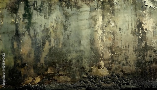 © Arthur, Obraz premium weathered abstract wall texture with muted green and brown tones, perfect for rustic background and artistic design