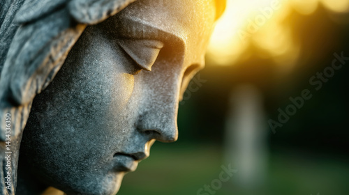 © Роман Варнава, Obraz premium Weathered angel statue adorned with moonlight in a mysterious cemetery at night