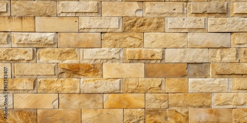 © Collection, Obraz premium Weathered beige sandstone wall texture with large stone blocks