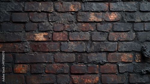 © NpicArt, Obraz premium Weathered Brick Wall with Dark Mortar