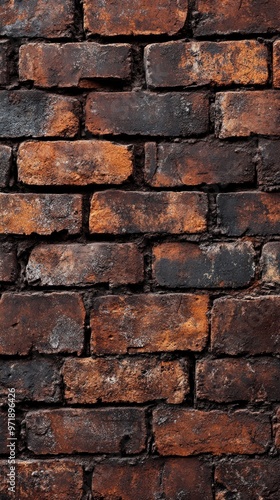 Fototapeta premium Weathered Brick Wall with Dark Stains and Patches