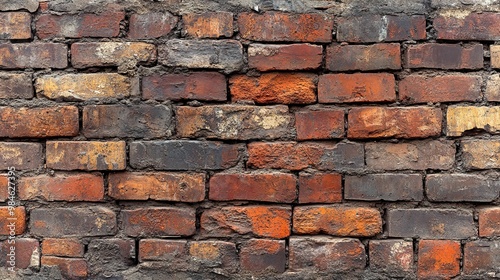 © Arieswanto, Obraz premium Weathered Brick Wall with Mortar and Irregular Patterns