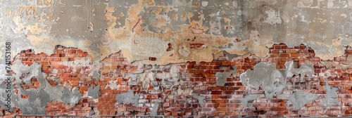 © Lukasz Czajkowski, Obraz premium Weathered Brick Wall With Peeling Paint background texture. Generative AI