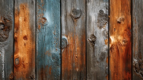 © GlopHetr, Naklejka premium Weathered Brown and Orange Vertical Wooden Planks Texture.