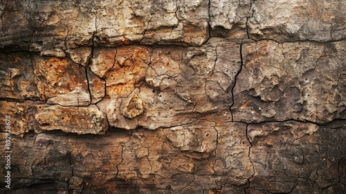 Obraz premium Weathered brownish tree bark texture with deep cracks and rough surface details
