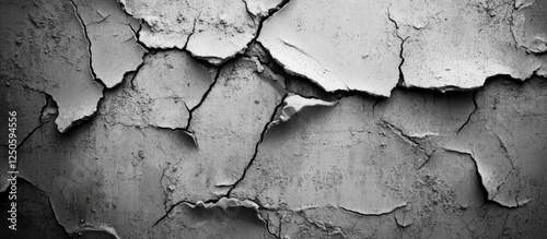 © Cyber Shutter, Obraz premium Weathered concrete wall texture featuring peeling paint and cracked surfaces in monochrome for background or design use.