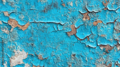 Obraz premium Weathered concrete wall with cracked blue paint and peeling texture suitable...