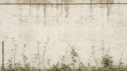 Fototapeta premium Weathered concrete wall with small plants at base.